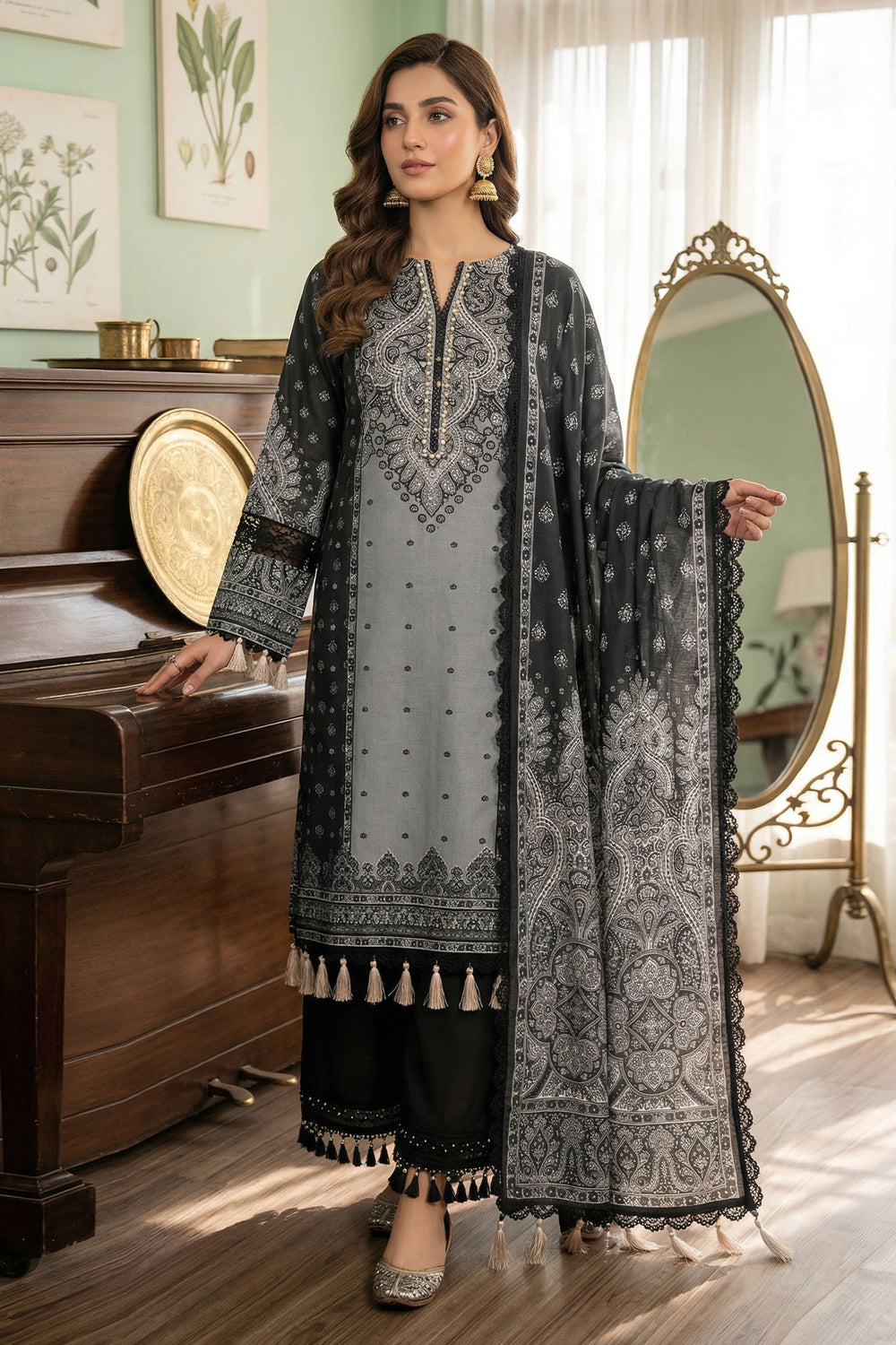 Charcoal 3 Piece Unstitched Premium Printed Lawn