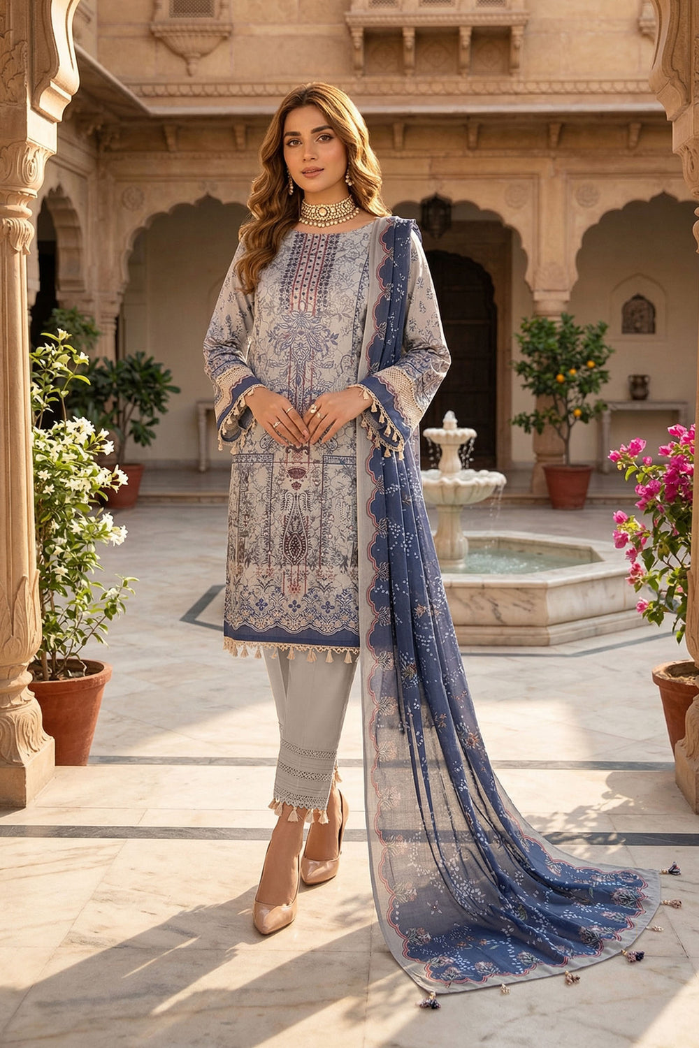 Light Gray 3 Piece Unstitched Premium Printed Lawn