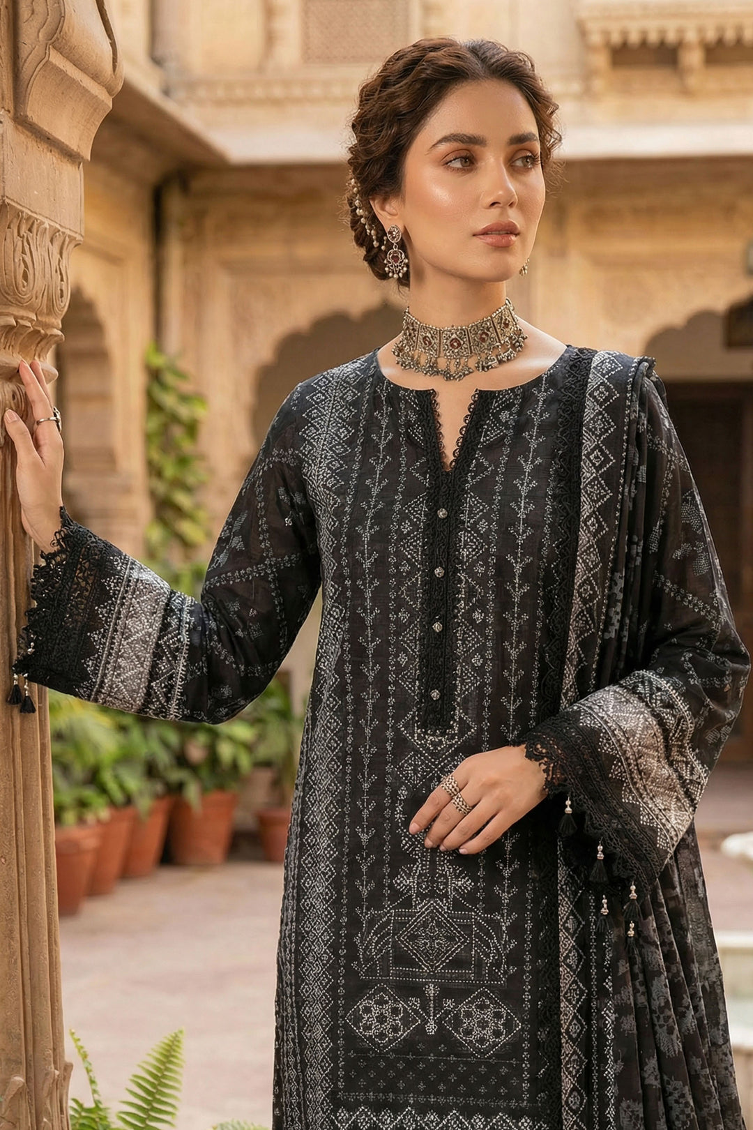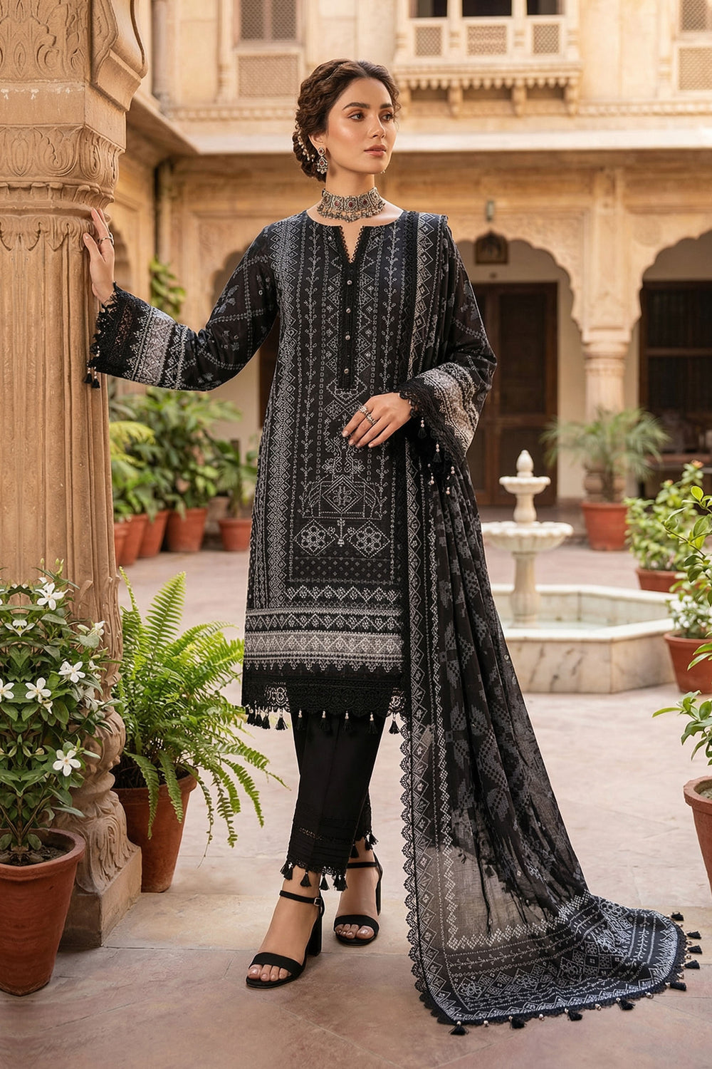 Black 3 Piece Unstitched Premium Printed Lawn