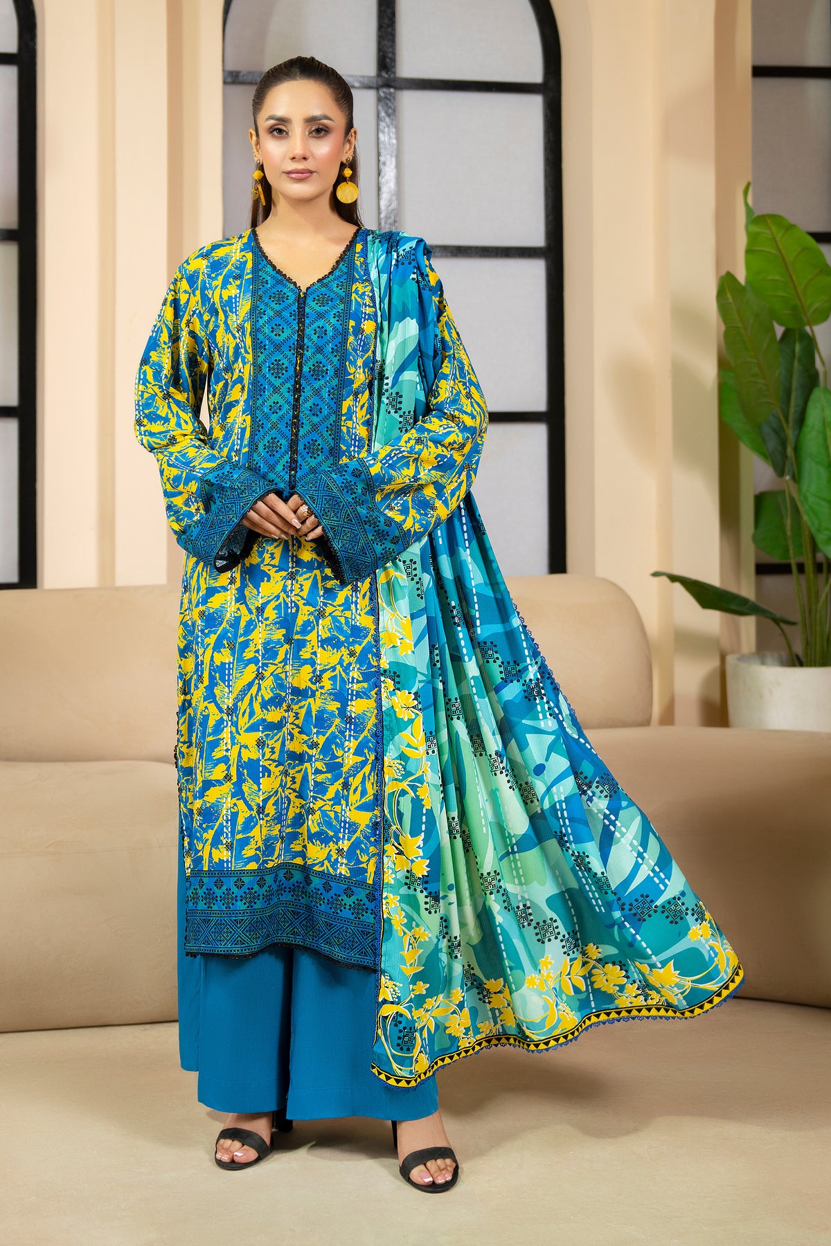 3 Piece Unstitched Azure Blue Printed Linen - W25CF1V1-S4 - JACQUARD CLOTHING