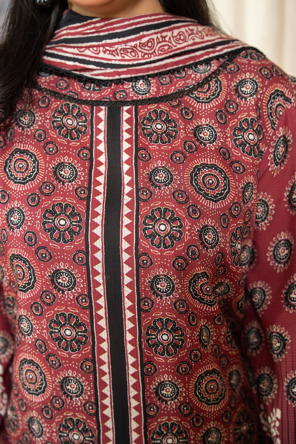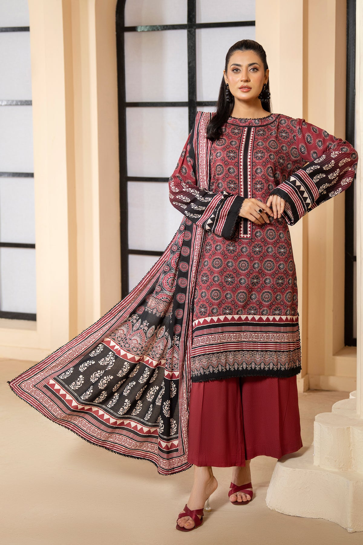 3 Piece Unstitched Maroon Printed Linen - W25CF1V1-S10 - JACQUARD CLOTHING