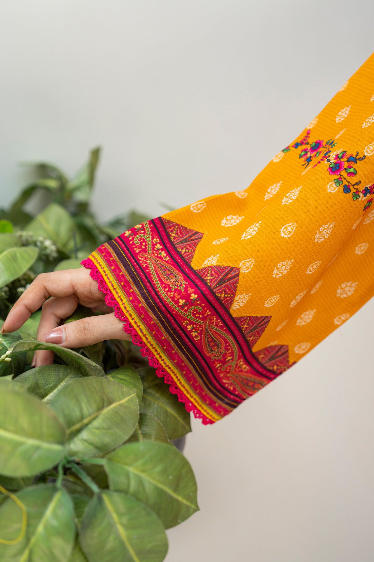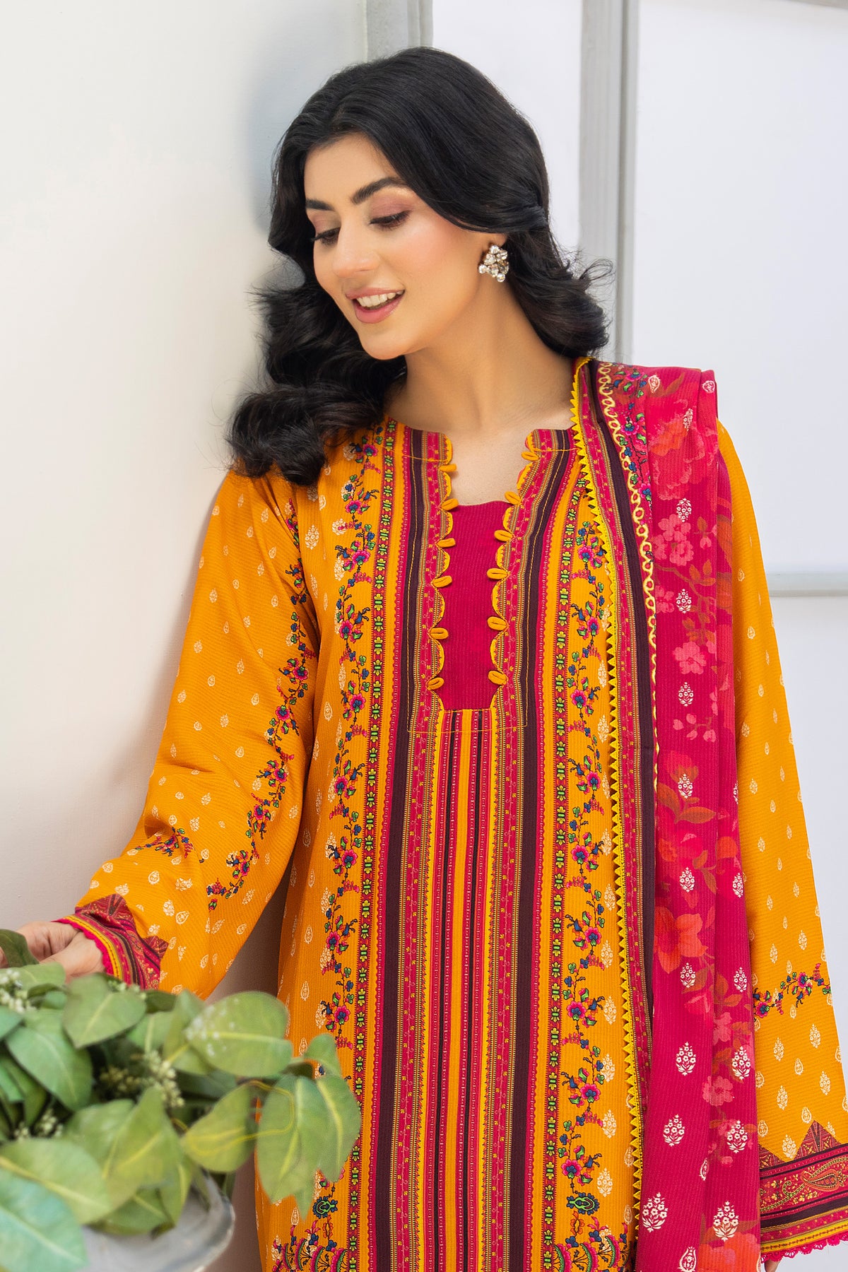 3 Piece Unstitched Orange Printed Linen - W25CF1V2-S10 - Jacquard Clothing