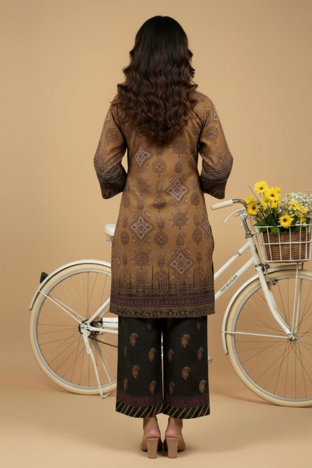 Unstitched Premium Pastel Brown Printed Co-Ord Set